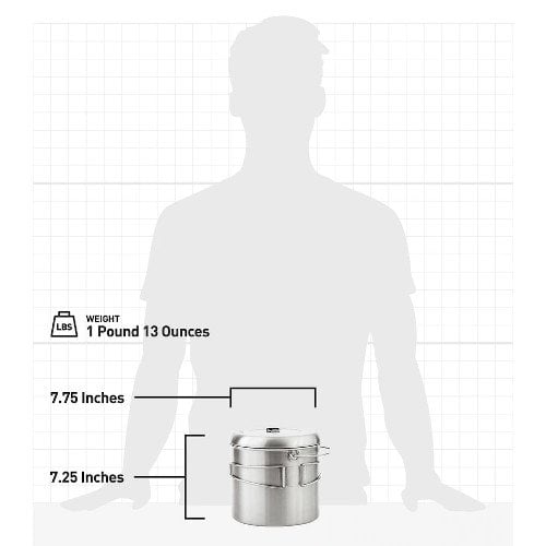 The Pot 4000 features an easy to use lid with rubber coated lift tab (lockable in the upright position); double fold out handles; a folding/removable bail; and volume markings in oz and mL And it comes with a black nylon stuff sack with drawstring.