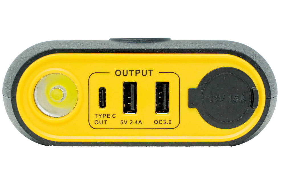 It has a regular AC, USB-A, USB-C, and 12V outlets. That means you can power a variety of devices.