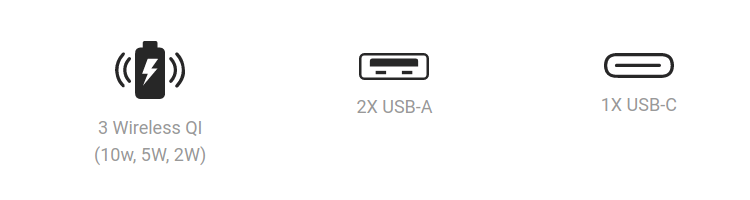 • 3-in-1 Charging + USB – Wirelessly charge any Qi smart phone, earbuds, watch plus USB devices