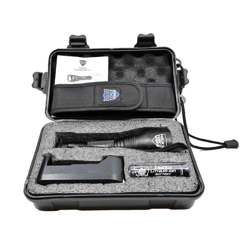 Rechargeable: The Police Force Tactical Ultra-Lite L2 Flashlight comes with our own Streetwise Rechargeable 18650 Lithium-Ion Battery and home charger.