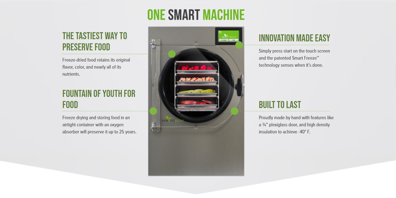 Refrigerated, frozen or canned foods just don’t last very long. But with our Harvest Right home freeze dryer, your preserved food will last up to twenty five years. And it doesn’t need to be rotated. Freeze dried food truly is the perfect food for home storage.